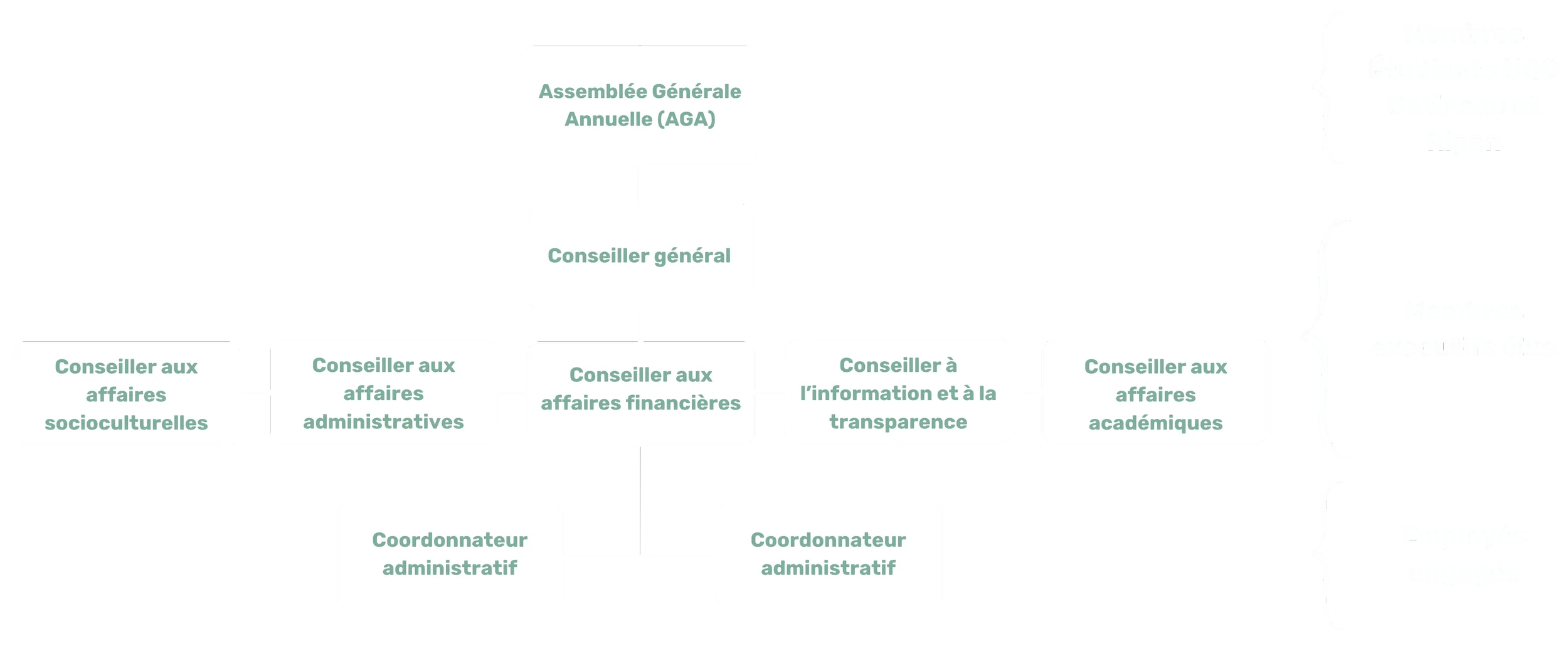 Deux coordonnateurs administratifs viennent soutenir l’organisation afin d’assurer sa continuité dans le temps.